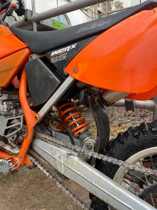 Se vende KTM 65 SX 2002. • Arranca perfecto y funciona muy bien mecánicamente. • Plásticos usados (hay uno trasero agrietado). • Cadena, cambios y embrague en buen estado. • Precio negociable. - Modelo 65 SX. - Manillar Renthal. - Neumáticos Bridgestone. Lista para ver y probar