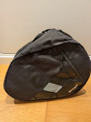 Juego de bolsas laterales para moto, modelo Shad36 color negro, con asa y bandolera desmontable. Como nuevas. Precio original 70€