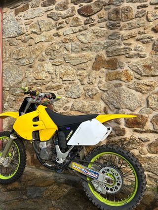 moto cross suzuki rm 125 dos tiempos del año 2000 perfecta para andar, las dos ruedas nuevas, kit de arrastre nuevo, aceite, pastillas de freno traseras nuevas, bujia, cadena también doy otro juego de plásticos negros última foto