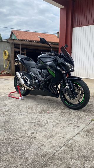 Moto Kawasaki Z800E en color negro con detalles en verde. - Limitada fisicamente y en papeles para el A2. Se puede deslimitar. - 14100 kilometros. - Cúpula puig. - escape storm homologado (se entrega el de serie) -porta matriculas corto homologado (se entrega el de serie) - Quilla completa de fibra. - mantenimiento echo a los 13000km ( aceite, filtro y bujías) - ruedas nuevas con menos 1000km ambas. La moto está perfecta y para usar. Cambio a trail.