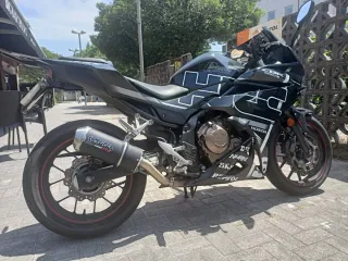 Vinilado custom Color negro CBR500R de 2018 Todos los mantenimientos al día. Discos, frenos, filtros y aceite cambiado hace menos de 1000km. Itv en vigor. 48000km Escape GPR homologado y portamatriculas barracuda homologado. Se entrega con ambas piezas originales. Topes anti caida Puig. Apto A2