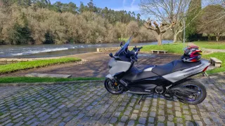 Yamaha T-MAX 500 . Ideal para desplazamientos urbanos y viajes. 30000 km 1 año de garantía Transferencia incluida ITV REVISIONES AL DÍA - Diseño deportivo y elegante. - Asiento cómodo para conductor y pasajero. - Amplio espacio de almacenamiento bajo el asiento.