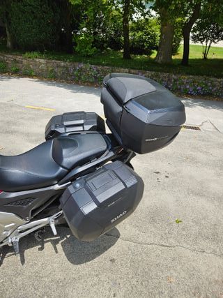 Honda NC 750X ABS de agosto 2023, 43,1 kW / 59 CV (NO limitada), con 8.000 km, en estado excelente. Ninguna caída ni golpes ni ningún arañazo. Siempre guardada en garaje privado. Uso responsable y muy cuidada. Cambio manual, ABS, Control de tracción, 4 modos de conducción, Ordenador de a bordo. * Cúpula alta GIVI (entrego también la original). * Caballete central. * Soporte y maleta Shad59x aluminio expandible con capacidad regulable de 46, 52 y 59 litros, valorado en más de 300 € -Negociable