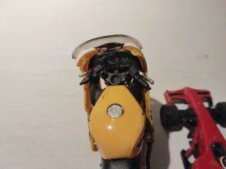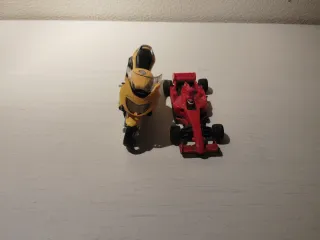 Moto Deportiva Amarilla y Coche F1 Rojo