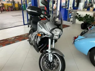 Moto Kawasaki Versys 650 en color plata. - Estilo adventure. - Incluye maleta trasera. En perfecto estado, mantenimientos cada 5.000 km, kit de arrastre nuevo, siempre durmió en garaje.