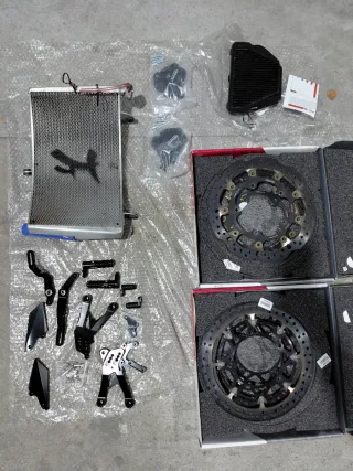 Radiador taleo 1500 Estriberas cnc 90 Filtro sprint filter 180 Discos galfer 300 Disgos brembo 300 Tapas protectoras gbracing 100 Lote 2200euros