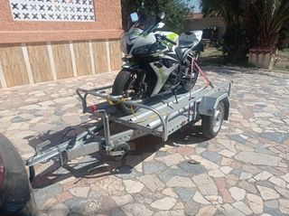 Se alquila remolque para dos motos de carretera o 3 de campo. Piña de 7 pines. Rueda de 13" y rueda de repuesto por si pinchas, con rampa de subida. Portamatriculas para que no tengas que hacer agujeros a la tuya También realizo transporte de motos si no tienes bola. También válido para carga. 25€ día 40€ fin de semana 125€ una semana Fianza 300€ Con documentación y contrato. Imprescindible fotocopia del DNI.