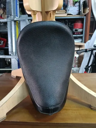 Sillín de moto estilo Le Pera, ideal para personalizaciones.Ideal para tapizar a tu gusto - Diseño en color negro con textura. - Acabado en cuero sintético. - Tiene un pequeño rasguño en la parte trasera