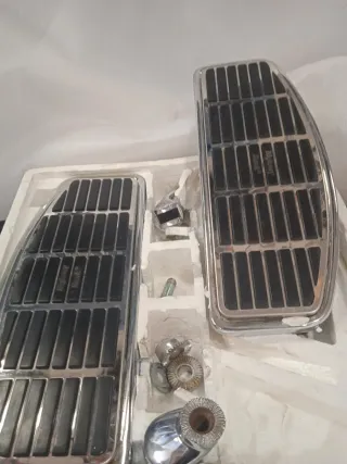 Plataformas de estilo cruiser para Suzuki VL800. Diseñadas para un look clásico y cómodo. - Acabado plateado y negro. - Incluye herrajes de montaje.