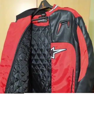 Chaqueta de moto Alpinestars con un diseño deportivo y llamativo. - Combinación de colores negro y rojo. - Estilo sportbike.