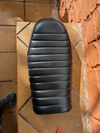 Asiento de moto de cuero sintético negro con diseño acolchado - Diseño clásico con líneas horizontales. - Material: uero sintético. - Medidas 52 largo x 26 ancho