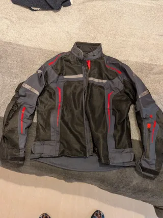 Chaqueta de verano para moto de la marca Kangroute, talla L. Diseñada para ofrecer comodidad y ventilación en climas cálidos. Como veréis en las fotos, lleva una espaldera más buena valorada en 45 euros, además de protección en hombros y codos. Se uso en 3 salidas (Vendimos la moto) - Paneles de malla para máxima transpiración. - Detalles reflectantes para mayor visibilidad. - Cierres ajustables en puños y cintura. - Bolsillos con cremallera.