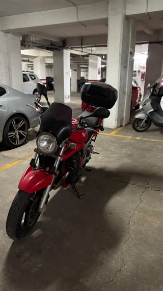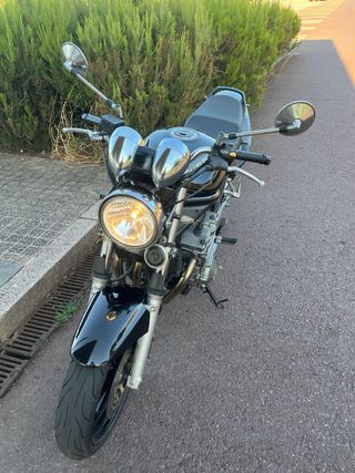 Se vende Suzuki Bandit 650 del 2008 en perfectas condiciones. Ha sido muy mimada, duerme en garaje, revisiones al día y en taller (con facturas), lleva escape Mivv homologado (se entrega el original), maleta Givi y puños calefactables. Se ha usado durante los últimos años a diario para ir a trabajar y algún finde de ruta, se vende porque ya no se le da uso. Tiene ITV hasta Septiembre del 2026, las ruedas, pastillas de freno y kit de arrastre están en buen estado; la última revisión se hizo a los 63.000 kilómetros. Para más info contactar via WhatsApp al 644948268. El precio es algo negociable, no urge la venta.