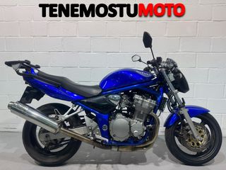 Moto Suzuki Bandit de estilo naked en color azul. - Motor potente y fiable. - Diseño deportivo y agresivo. - Manillar ancho para un mejor control. - itv hasta julio 2027 - kit de arastre nuevo - se vende con tuvo de escape original y el que lleva con tarjeta omologacion -aceite filtros bujias cambiados recientemente -con centralita para A2 incluida