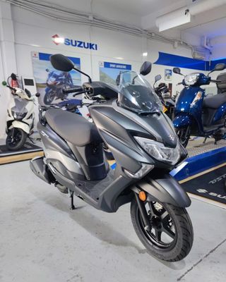 Suzuki Burgman Street 125cc. SEMINUEVA. 850 km Con motor de 125cc refrigerado por aire (aprox. 8.6 CV) con transmisión automática CVT, iluminación LED, un asiento de doble plaza y plataforma plana. Tiene buenos espacios de almacenamiento (guanteras, hueco bajo asiento, gancho), cuadro digital y un diseño elegante. Motor y Rendimiento: Tipo: Monocilíndrico, 4 tiempos, refrigeración por aire, SOHC. Cilindrada: 124 cc. Potencia: Aproximadamente 8.6 - 8.8 CV (dependiendo del año). Transmisión: Automática por variador (CVT). Alimentación: Inyección electrónica. Consumo: Muy eficiente (ej. 1.9 L/100km) EN PERFECTO ESTADO