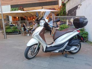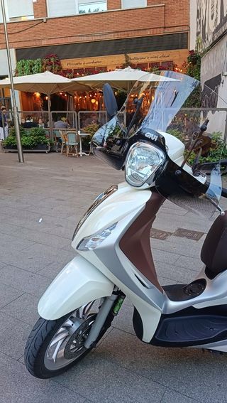 Una scooter practica, cómoda y fácil de llevar. Genuina Italiana, en crema y chocolate con detalles en cromo, mucho almacenamiento, bajo consumo con star & stop, buena relación peso potencia con motor IGet 12 CV, refrigeración liquida, ABS, etiqueta C, revisiones cada 5000 km, siempre en garage, 25000km. Solo paseo, nunca usada para reparto ITV en vigor hasta el 4/2027 He tenido muchas scooters de 125cc, desde las pesadas y poco ágiles Suzuki Burgman y Kymco Super Dink, hasta la poco estable con altos consumos de la Kymco Agulity City, está moto es para mí ideal. Baúl nuevo, pantalla Givi protege del frío invernal pecho y manos