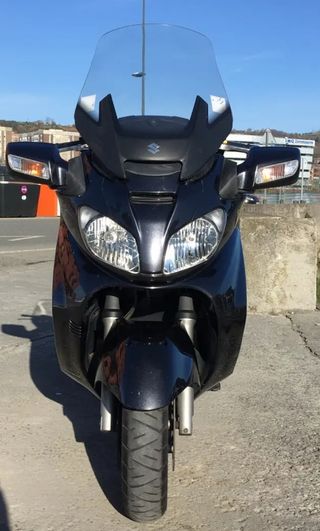 Scooter Suzuki Burgman 400 de color azul. Un modelo elegante y práctico para la ciudad. Modelo 2007. Etiqueta C. Itv hasta 04/2027. Aceite, filtros, pastillas traseras y líquido frenos y batería cambiados hace 2000Kms. Embrague Malossi, Rodillos DR Pulley, emulador mariposa de admisión y neumáticos todo cambiado hace 10.000kms. Parrilla para baúl trasero, Quad Lock para anclar el teléfono móvil. Mucha capacidad de carga, muy manejable. Muy comoda, para todo tipo de alturas. Duerme en garaje. Se puede ver en Bilbao.