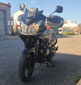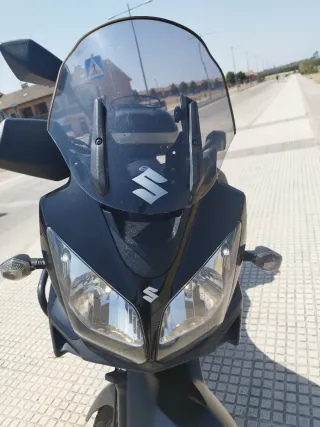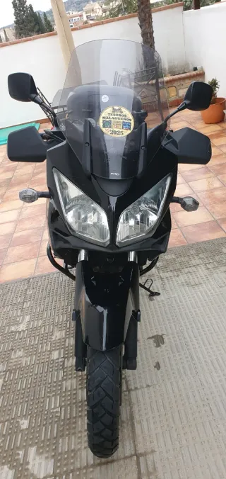 Moto Suzuki DL650 V-Strom 2008 etiqueta C en buen estado. 111000Km. Un Solo dueño. Color negro mate. Ruedas Al 70%. Batería recién cambiada. Ideal para viajes. ITV hasta 2027 Incluye: -Refuerzo de Horquilla -Protector de Radiador -Protector Lateral Givi -Topcase Givi con Almohadilla pasajero, Anclajes y Luz -GiPro contador de Marchas -Latiguillos Metálicos. -Cupula Ajustable -Espejos deportivos -Caballete Original -Extensor pata de cabra touratech. -Asiento viscoelástico. -Filtro de aire permanente. Regalo Kit con : Filtro de aceite, pastillas de freno, bujías y limpieza de filtro. Se encuentra en Navalcarnero.