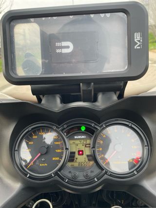 Panel de instrumentos de Suzuki V-Strom 650 DL. 63500 km ruedas al 50/100 Año 2005. ITV al día y revisiones. Se usa a diario. Se acepta prueba mecánica. - Velocímetro hasta 200 km/h. - Tacómetro hasta 12.000 r/min. - Pantalla digital con hora y odómetro.