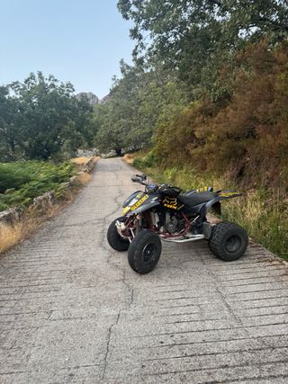 Se vende quad Suzuki LTZ 400 en excelentes condiciones. tiene cambiado recientemente el cable de embrague, pastillas de freno delanteras y traseras, ruedas delanteras nuevas, las traseras 50%, 4 gomas traseras a estrenar, 6 separadores (2 de aluminio), escape completo FMF, ITV en vigor, escape de serie, otro ventilador, juego de plástico trasero y otra defensa a parte de la qie trae de serie. Tambien se podria cambiar por moto de enduro.