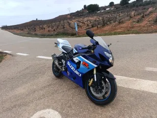 Suzuki GSX-R 600 K6 en color azul y blanco. -Matriculada en el 2006, solo dos propietarios, el anterior y yo. -Limitacion a 25Kw on centralita limitada - Cúpula negra original Suzuki Homologada, se entrega la original transparente. - 42 200 km - ITV hasta 2027 ( pasada en septiembre de 2025 ) - Completamente de serie. - Bomba de gasolina nueva (con factura de taller), bujías nuevas ( NGK CR9E), cambio de filtro y aceite con 41600 km, estator nuevo. - Controlador de corriente recolocado para evitar que se sobrecaliente y posible avería del componente ( en este modelo salió de serie con el controlador pegado al bloque motor