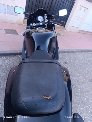 Año 2006 con 49.000 km tiene menos km al tener un diente menos en el piñón y reglaje recien hecho, ruedas al 85% y kit de arrastre con un diente menos y con pocos km y bomba de gasolina nueva. La moto tiene bomba delantera de freno brembo 19x20 con latiguillos metalicos y pinzas de freno de R6 y pastillas con menos de 1000km. Cupula puig doble burbuja homologada. El escape y el catalizador esta homologado tambien. Tiene la plastica nueva y se da la que se quito, a parte tengo otro escape y otro catalizador leo vince como el que tiene puesto. Se da la frenada de serie y el porta de serie. Itv hasta 2027 y bateria nueva