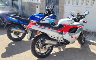 Suzuki GSX 600F del año 1990. La compré como proyecto pero por enfermedad no voy a poder terminarla. Lo que le he hecho: Cambio de aceite, tratamiento epoxi, le puse el carburador que no lo traía y una llave de gasolina nueva. solo me faltaba ponerle una batería y cambiarle el liquido de frenos pero la volví a dejar parada y ahora hay que volver a limpiarle el carburador porque se ha atascado el chicle de bajas. También habría que ponerle un aforador. Tengo un video que le hice arrancada cuando le puse el carburador. Tiene papeles pero no ITV.