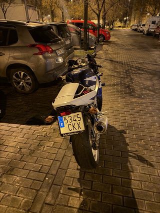 Suzuki Gsxr 600 del 2008, aunque es el modelo 2006 2007. 44.150km. Muy cuidada. ITV hasta julio del 2026. Cambio de aceite, filtro aceite y limpieza del filtro de aire (es de alto flujo) a los 43.000km. Anticongelante y regulador (montado en el lateral para evitar el problema del calentamiento) a los 36.000km. Rueda delantera a medio uso, a la trasera le quedarán unos 1000km. Extras: escape LeoVince homologado, tapa colín, cúpula azul, porta matrículas corto y topes anticaída. Se entrega todo lo de serie. Está para rodar sin hacerle nada. Segundo dueño, la compré en octubre del 2023. No cambios. No negociable.