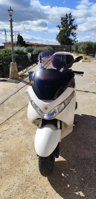 Maxi scooter Suzuki Burgman 400 del año 2007. Moto fiable y dura. Funciona perfectamente. *aceite y filtros recien cambiados *ruedas y frenos nuevos * itv hasta Julio 2026 * 1 año de seguro gratis *87.500 km Lo unico que hay que hacerle ( no es urgente) cuesta 50€ que es cambiar el disco de freno trasero que tiene una pequeña holgura y a veces suena con el contacto de la pastilla de freno. Moto potente y divertida La vendo por cambio de domicilio. - Diseño elegante y deportivo. - Cómoda para trayectos largos.