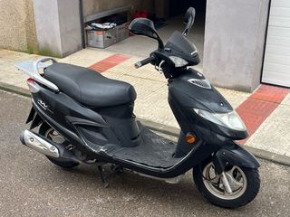 Maxi scooter en buen estado, lista para circular. - Diseño moderno y deportivo. - Asiento cómodo para dos personas. - Amplio espacio de almacenamiento bajo el asiento.