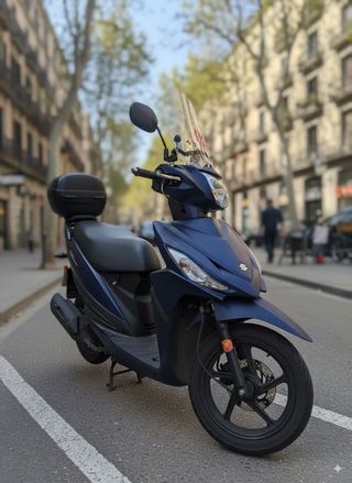 Scooter Suzuki Address 110 en color azul brillante. Ideal para desplazamientos urbanos. Vendo por cambio a una más grande. - Año 2018 - 4.800km - Baúl trasero incluido - En perfecto estado - Itv recién pasada hasta 2027