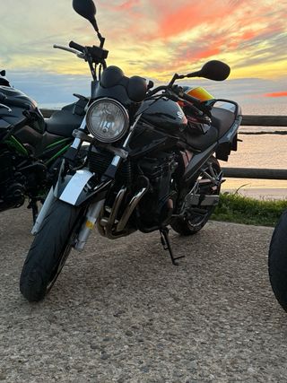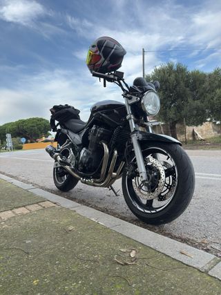 Suzuki Bandit 650 del año 2005 con motor de carburación. limitada en papeles y mecánicamente para el carnet A2. -Baúl grande y estructura (no está montado) - 650cc - Carburación - Escape Mivv homologado -64.500km (nada para estos motores) - bujías ngk iridium y kit de arrastre menos de 1000 km - Aceite, filtro de aceite y de aire recién cambiados y puesta a punto de carburadores. -Goma trasera Diablo Rosso III al 90% -Intermitentes led secuenciales homologados. Está muy mimada y son motores indestructibles. Tiene desperfectos estéticos por caída por una mancha de aceite ( a muy poca velocidad ) Se vende por cambio de cilindrada.