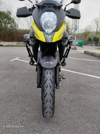 Moto Suzuki V-Strom 650 ABS del año 2016 con 56.000 kilómetros. Se encuentra en muy buen estado, actualmente limitada para el carné A2. La moto funciona perfectamente, la vendo al cambiar a una moto de mayor cilindrada. Kilómetros: 56.450 km ITV: válida hasta mayo 2026 Color: Negro Precio: 5.650 € Precio algo negociable Moto fiable, cómoda y lista para viajar. **Extras incluidos**: -2 maletas laterales + Baúl trasero de marca GIVI con respaldo incluido - Defensas laterales - Toma USB - Paramanos - Puños calefactables - Caballete central -Neumáticos Bridgestone con muy poco uso. Escribidme! Mantenimiento e ITV al día
