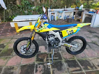 Moto de motocross Suzuki RMZ 250 del año 2023. Moto en excelentes condiciones, 45 horas modo aficionado, todo original, pastillas de freno, neumatico delantero y muchos extras. factura de compra y su cajón de repuesto original suzuki sin abrir. Lista para rodar. - Modelo RMZ 250. - Año 2023. - Estilo motocross