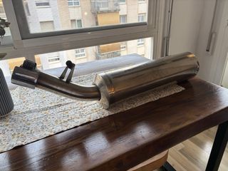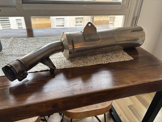 Escape original para Suzuki GSX 650F. Está en buen estado, solo tiene un pequeño trozo de plástico enganchado que probablemente se pueda sacar rascandolo. - Material: Acero inoxidable. - Diseño: Silenciador cónico. - Montaje: Conexión a colector.