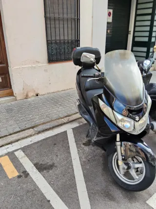Suzuki Burgman 250 AN en color negro. - Diseño moderno y deportivo. - Asiento cómodo para el conductor y pasajero. - Amplia cúpula delantera. - Baúl trasero incluido. 52.000kilometeos funciona todo bien revisión hecha correa embrague etc algo negociable