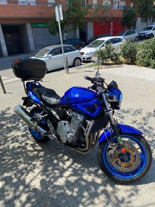 Suzuki GSF 600 Bandit año 2003 con pegatina medioambiental 50.000 km. Sin ITV pero sin problemas para pasarla,ruedas y mantenimientos al día transmisión nueva.la vendo o cambio por custom por problemas de rodillas "ahora es demasiado alta para mi". - Color azul. - Cúpula. - Asiento negro.