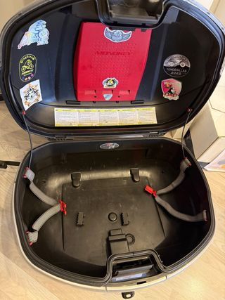 Baúl Givi V46 Monokey, diseñado para Suzuki GSF Bandit 650 K7. Este baúl es ideal para transportar tus pertenencias de forma segura. - Sistema de anclaje Monokey. - Color negro con detalles plateados. - kit de tornillería totalmente nuevo. - con arañazos como se puede ver en las fotos
