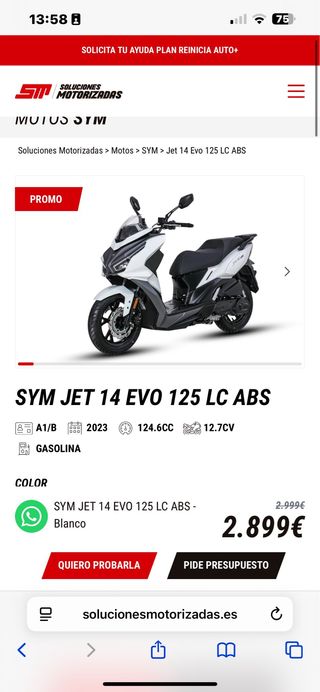 SYM Jet 14 EVO 125 – Oferta septiembre 🔥 💰 2.599 € con matrícula y seguro incluidos 📍 NUEVA A ESTRENAR La scooter urbana más práctica y equipada de SYM ahora en promoción limitada hasta el 30/09. ✨ Lo mejor de la Jet 14 EVO: ✅ Motor 125 cc Euro5 fiable y eficiente ✅ Full LED + pantalla digital LCD ✅ Suelo plano + gran espacio bajo el asiento ✅ USB doble (Type A y C) ✅ Frenos de disco con ABS / CBS ✅ 5 años de garantía oficial SYM 🚨 Precio habitual hasta 3.499 € – Ahora solo 2.599 € 🚨 📲 ¡Reserva ya la tuya antes de que se acabe la promoción!