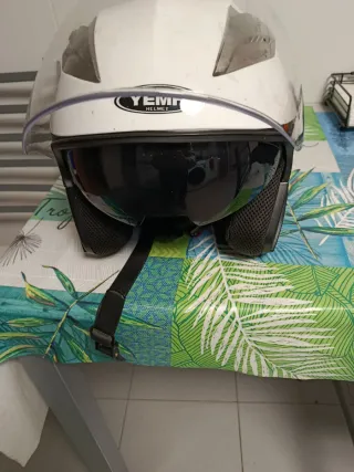 Casco de moto de estilo scooter. - Color blanco. - Marca YEMA. - Visera transparente. Incluye Funda