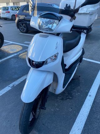 Scooter Peugeot 125i en color blanco. Ideal para moverse por la ciudad con agilidad. - Diseño moderno y elegante. - Transmisión automática para una conducción suave.