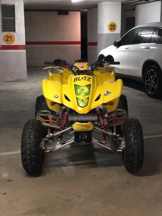 Vendo Suzuki LTZ 400 en excelente estado, con una puesta a punto completa a nivel mecánico y de chasis. Para que no tenga holguras Mecánica recién revisada: • Cadena de distribución nueva • Tensor nuevo • Culata repasada con junta y válvulas nuevas • Aceite y refrigerante EVANS (sin agua) • Bujía y filtro de aire nuevos • Eje trasero nuevo con rodamientos y retenes • Kit de arrastre nuevo • Trapecios delanteros revisados con casquillos de nylon nuevos • Neumáticos SUNF nuevos, con muy buen agarre • Marcador digital Acepto cambios bmw mercedes 4x4 Nissan ,patrol todoterreno , moto a2 golf gti Yamaha honda furgoneta