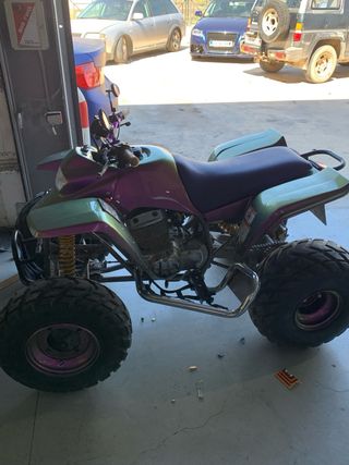 Quad de 250cc Lo tengo hace mucho pero apenas se ha usado porque no tengo remolque lo tenia en una finca para usarlo por ahí. Ahora mismo esta parado en el parking tiene muy pocos km tiene dos problemas uno es que el sensor de la maneta de arrancar con el freno no finciona asi que tiene un empalme directo y no hace falta apretar el freno para encender el otro es mas grabe esta a nombre de un amigo mio tengo su DNI y se puede hacer el cambio de nombre nada mas que tiene un embargo CADUCADO pero tengo que ir a bcn a rellenar un formulario y no tengo tiempo tengo todos los papeles del quad lo vendo para q lo usen en eecinto privado