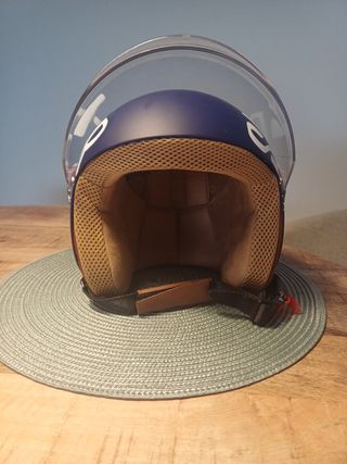 Casco de moto marca Zeus, tipo jet,usado y con la pantalla un poco rayada,de ahi el precio - Modelo Jet - Color negro. - Visera transparente incluida.