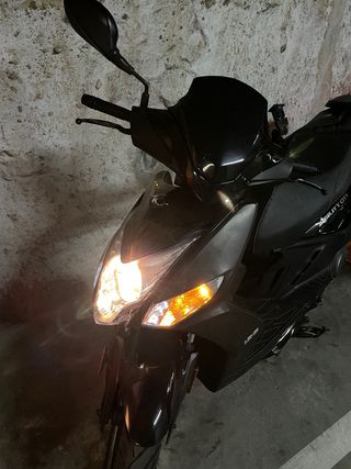 Moto SYM de color negro, ideal para desplazamientos urbanos. - Diseño moderno y deportivo. - Parabrisas alto para mayor protección. - Luces LED integradas. tiene detalles de chapa y un aspadas pero está bien mantenida con revisión echa, filtros y hacerte y ITV recién pasada. 30000km 2014