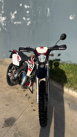 Moto muy cuidada y recien repasada de arriba a abajo. Más de 1000€ gastados. La moto tiene 8650km todos por camino. No ha entrado en ninguna trialera ni sector complicado que la pueda dañar. La moto tiene pneumaticos nuevos, bateria original beta recien cambiada, pastilla de frenos, depósito y bomba de gasolina nuevos, la empuñadura del gas y la caña que va dentro recien cambiadas, tubo de escape GPR modificado entrego originar y parafant de motocros con varios filtros nuevos.