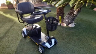 Scooter de movilidad para personas mayores, ideal para desplazamientos cómodos. Muy fácil de usar. Nuevo a estrenar, y todavía en garantía. Costó 1400€ y vendemos por 999€. Se puede entregar en Valencia, Teruel o alrededores. - Asiento acolchado y giratorio. - Cesta delantera. - Ruedas todoterreno. - Diseño moderno y funcional.