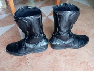 Botas de moto de la marca Course en talla 45. Están usadas por lo que tienen algo desgaste pero no están rotas, no son de cuero natural, es material sintético. No encuentro los deslizador es de las puntas. - Material exterior: cuero sintético, con forro. - Cierre de cremallera y velcro.