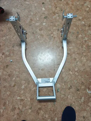 Caballete para moto de la marca Wiltec, con un acabado plateado. Esta nuevo sin usar, lo compré antes que la moto pensando que podría instalarle los diábolos y no se puede, por eso lo vendo. Se vende junto a los diábolos. - Fabricado en aluminio. - Diseño robusto y estable. - Asa para facilitar su manejo.