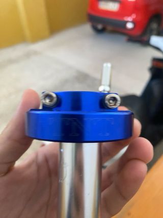 Puño de recorrido corto de la marca TNT. Fabricado en aluminio anodizado azul. - Diseño deportivo. - Acabado en aluminio azul.